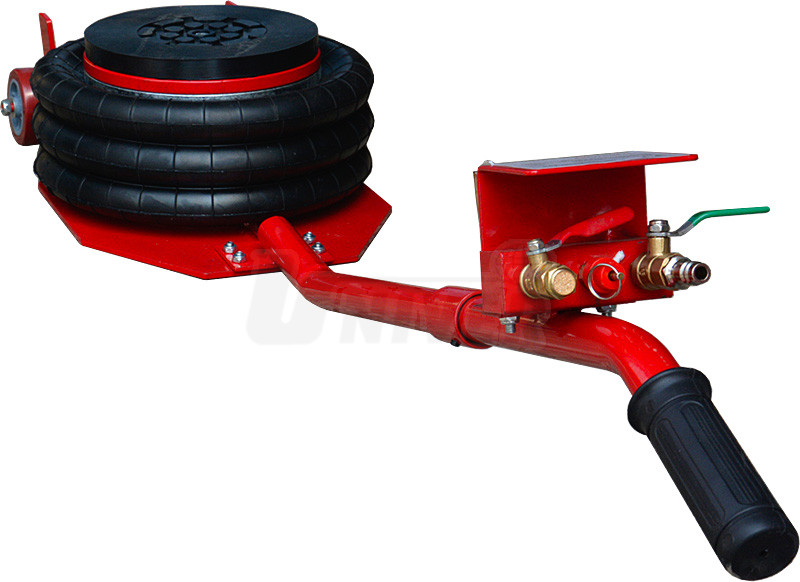 Pojízdný pneumatický třístupňový / tříměchový zvedák s nosností 3,8 t má dvě kolečka a jednoduché ovládání na oji.- pneumatické měchové zvedáky jsou v autoservisech i v pneuservisech velmi oblíbené