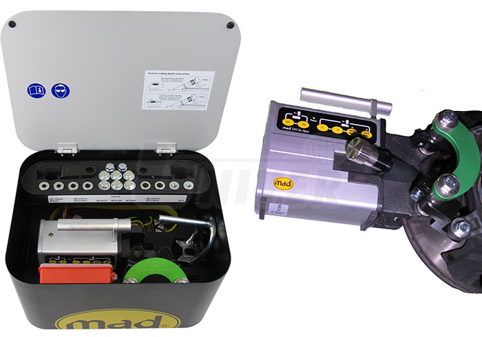 - plynule nastavitelná výška pohonné jednotky s výkonným elektromotorem umožňuje obrábění brzdového kotouče jak na podlaze, na montážní jámě, tak i u vozidla zvednutého na zvedáku