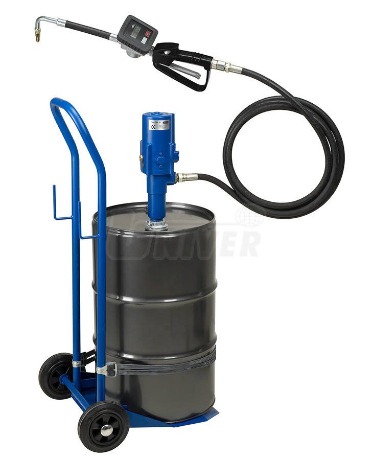 Pojízdná plnička olejů s pneumatickým čerpadlem 3:1 určená pro sudy/nádoby 60 l.- pneumatické olejové čerpadlo 3:1