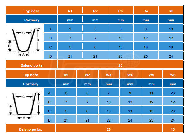 W 1 - prořezávací nože - sada 20ks