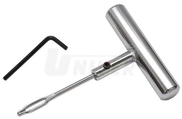 Celokovová profesionální provlékací vidlice s T-rukojetí. Délka výměnné vidlice bez rukojeti 70 mm. Součástí balení je i zahnutý imbus-klíč používaný při výměně vidlice.