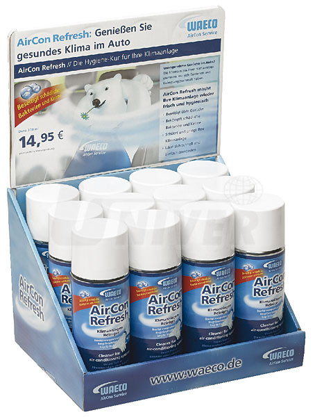 Vysoce účinný přípravek pro čištění a dezinfekci klimatizací ve spreji má integrovaný, variabilně seřizovatelný, rozprašovací nástavec a jako doporučené příslušenství i hadičku s rozprašovací sondou. Při aplikaci, kdy se mlhovina přípravku nastřikuje uvnitř auta do větracího/klimatizačního systému nebo se využije hadička s rozprašovací sondou k proniknutí až k výparníku, se odstraňují z výparníků, vzduchových kanálů a odvodů zkondenzované vody bakterie, plísně a další škodlivé mikroorganismy a zabraňuje tak i vytváření typického zápachu klimatizací. Účinnost je testována podle normy EN 1040. Přípravek se používá také pro prevenci znečištění a zápachu klimatizací.