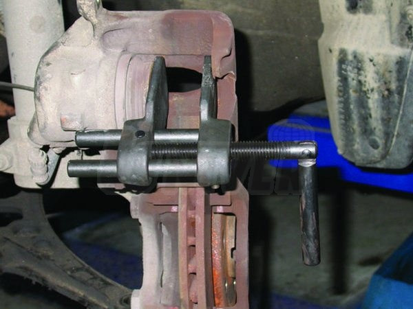 Patentovaný přípravek zesílené konstrukce ulehčuje zejména instalaci nových brzdových destiček do třmenu kotoučové brzdy tím, že umožňuje zpětné zatlačení pístku třmenu brzdy.Vhodný pro většinu brzdových třmenů: ATE, Bendix, Delco, Girling