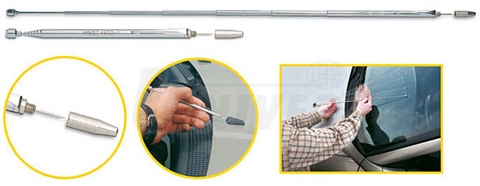 Teleskopický přípravek pro seřizování ostřikovačů tvoří výsuvná tyčka (155-670 mm), která ukazuje směr vystříknutého paprsku a má magnetickou hlavici Ø 6 mm, seřizovací jehlu a ochrannou krytku.