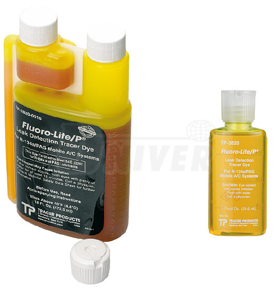 Speciální přísady (aditivy) pro zjišťování netěsností klimatizací ve dvou lahvičkách používaných jako doplňující lahvičky u přístrojů pro servis klimatizací Waeco s integrovaným managementem přísad nebo se při prázdné klimatizaci přísada jednoduše nalije do některé součásti - zpravidla do vysoušeče. Do chladicího prostředku vmíchané přísady pak i v případě nepatrného úniku při osvícení UV-lampou fluoreskují.TP-3820-0301 - 3 ks (cca 4 osobních vozů)