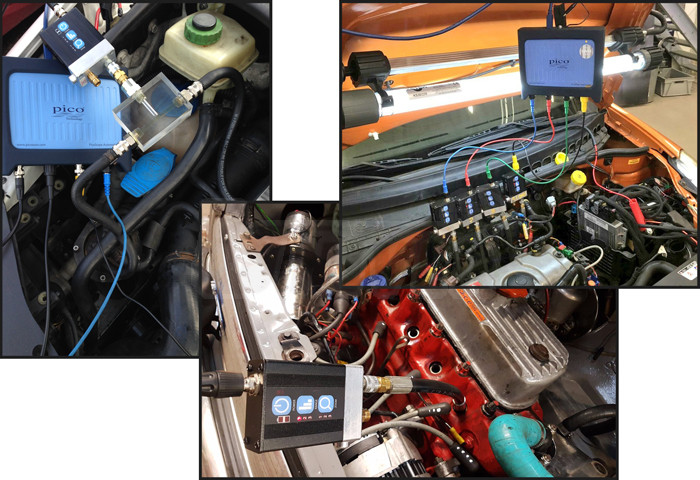 - typické testy jsou např. tlak v jednotlivých válcích, pulzace výfukových plynů, kolísání tlaku v sacím potrubí, tlak v klikové skříni, tlak paliva