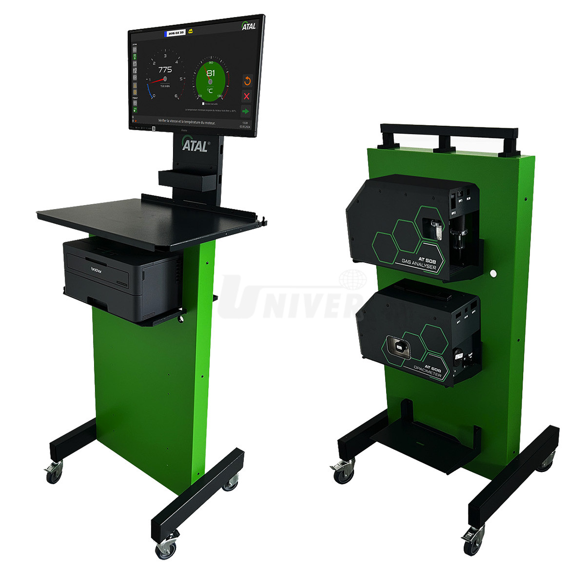 - modul kouřoměru (AT608) používá unikátní optickou lavici ATAL s vysoce výkonným zdrojem světla,systém proudění kouře v měrné komoře eliminuje znečištění měřící optiky, přístroj používá velmi lehkou 6 m dlouhou vytápěnou odběrovou sondu, je univerzální pro osobní i nákladní automobily, přístroj má vestavěnu čistící proceduru sond před zahájením měření každého vozidla