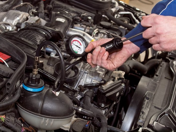- 3 funkce: kontrola těsnosti chladičů, plnění a čištění