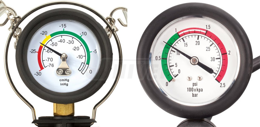 - zkoušení ztráty tlaku / netěsnosti s využitím tlakoměru