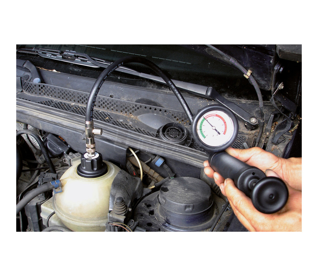 - rychlé vyhledání netěsností v chladicím systému, například netěsnost chladiče, vadné těsnění hlavy válců, vodní pumpy, hadic atd.