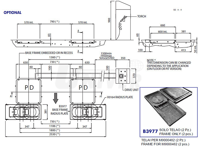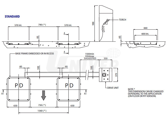 Elektrohydraulický přístroj pro zjišťování vůlí v zavěšení kol a řízení je určen pro instalaci na podlahu. Má skříň s ovládacím panelem, montážní lampu a dvě plošiny, které vykonávají dva různé pohyby, což umožňuje identifikaci vůlí v zavěšení kol i v řízení. Plošiny se usazují do podlahového rámu, přičemž je možné vedle instalovat i rám s otočnou plošinou.Technické parametry: