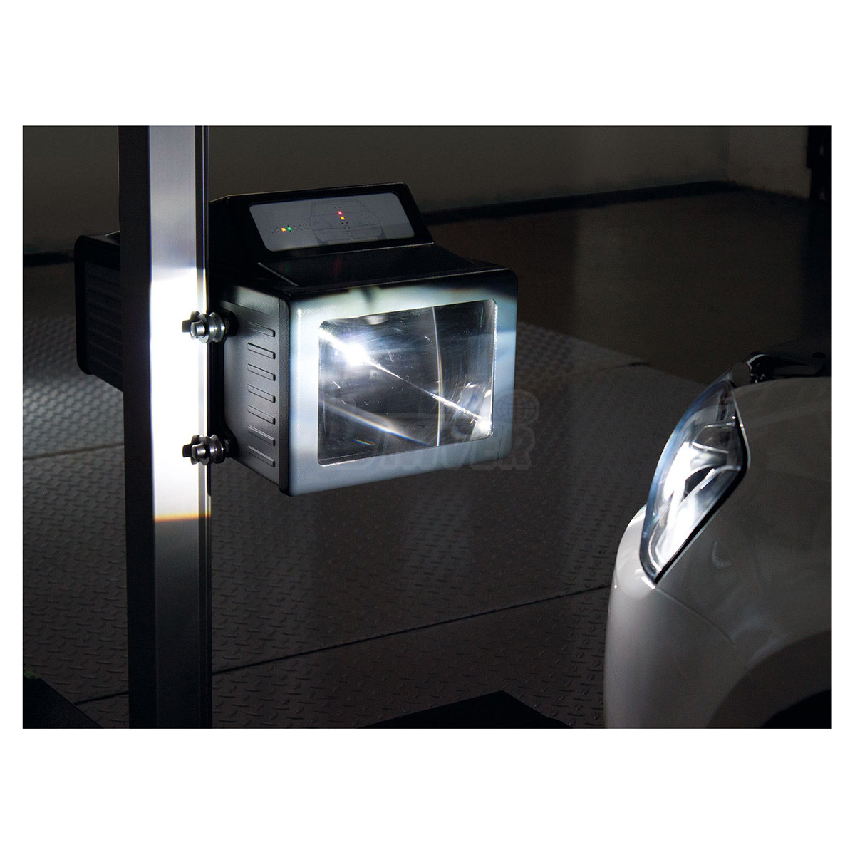 Elektronický regloskop schválený pro automobily koncernu Volksawgen pro kontrolu a seřizování světlometů Bilux, Halogen, Xenon, LED nebo novějších generací LED Matrix světlometů IQ.LIGHT, Dynamic Light Assist, Matrix Beam atd.- naměřené hodnoty jsou digitalizovány CMOS kamerou s vysokým dynamickým rozsahem pro snímání a digitalizaci obrazu světlometů, zpracovány a zobrazovány na 7“ dotykovém displeji s uživatelsky příjemnou navigací v menu
