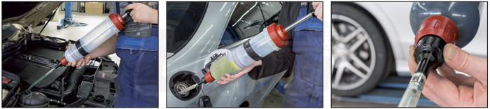 - vhodná pro plnění/odsávání nafty, benzinu, motorových olejů, převodových olejů, olejů servosřízení, brzdové kapaliny, mrazuvzdorné chladicí kapaliny atd.