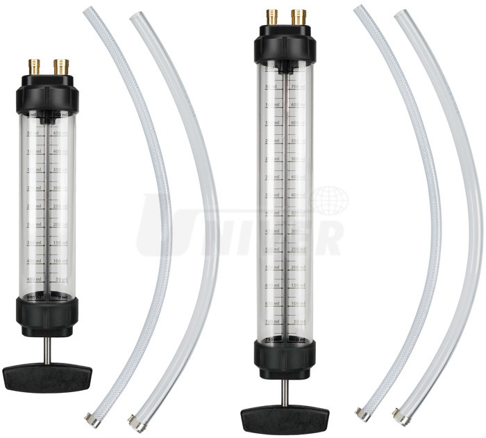 - trubice: transparentní PVC se stupnicí, píst: FKM (Viton)