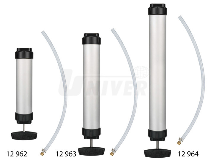 Ruční plničky a odsávačky kapalin s objemem 500 / 750 / 1000 ml.- široké uplatnění při plnění a odsávání kapalin - vhodnost varianty s hliníkem uvedena v tabulce