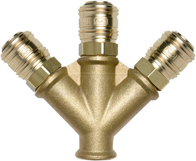 Roztrojka se 3 rychlospojkami mosazná