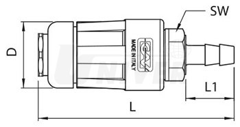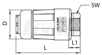 | typ | závit | L (mm) | D (mm) | L1 (mm) | SW (mm) |