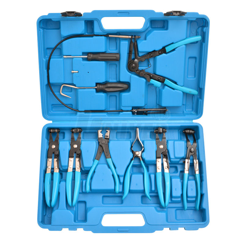 9-dílná sada obsahuje nejenom všechny základní druhy speciálních kleští na hadicové spony (7 ks), ale také přípravek na demontáž hadic a šroubovák na hadicové spony.Obsah sady: