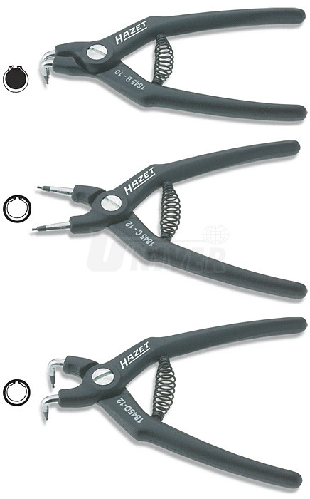 8-dílná sada kleští na vnější i vnitřní pojistné kroužky z vysoce kvalitní speciální oceli. Umožňují rychlou a bezpečnou práci s různými pojistnými kroužky různého průměru. Mají precizní, broušené a fosfátované špičky, plastové, extrémně odolné, ocelí vyztužené části, zpětné pružiny a ergonomické rukojeti, což umožňuje vysoký přenos síly na čelisti. Samozřejmostí jsou perfektně vyrobené klouby s velmi úzkou tolerancí rozměru otvoru pro čep.Sadu tvoří tyto kleště: