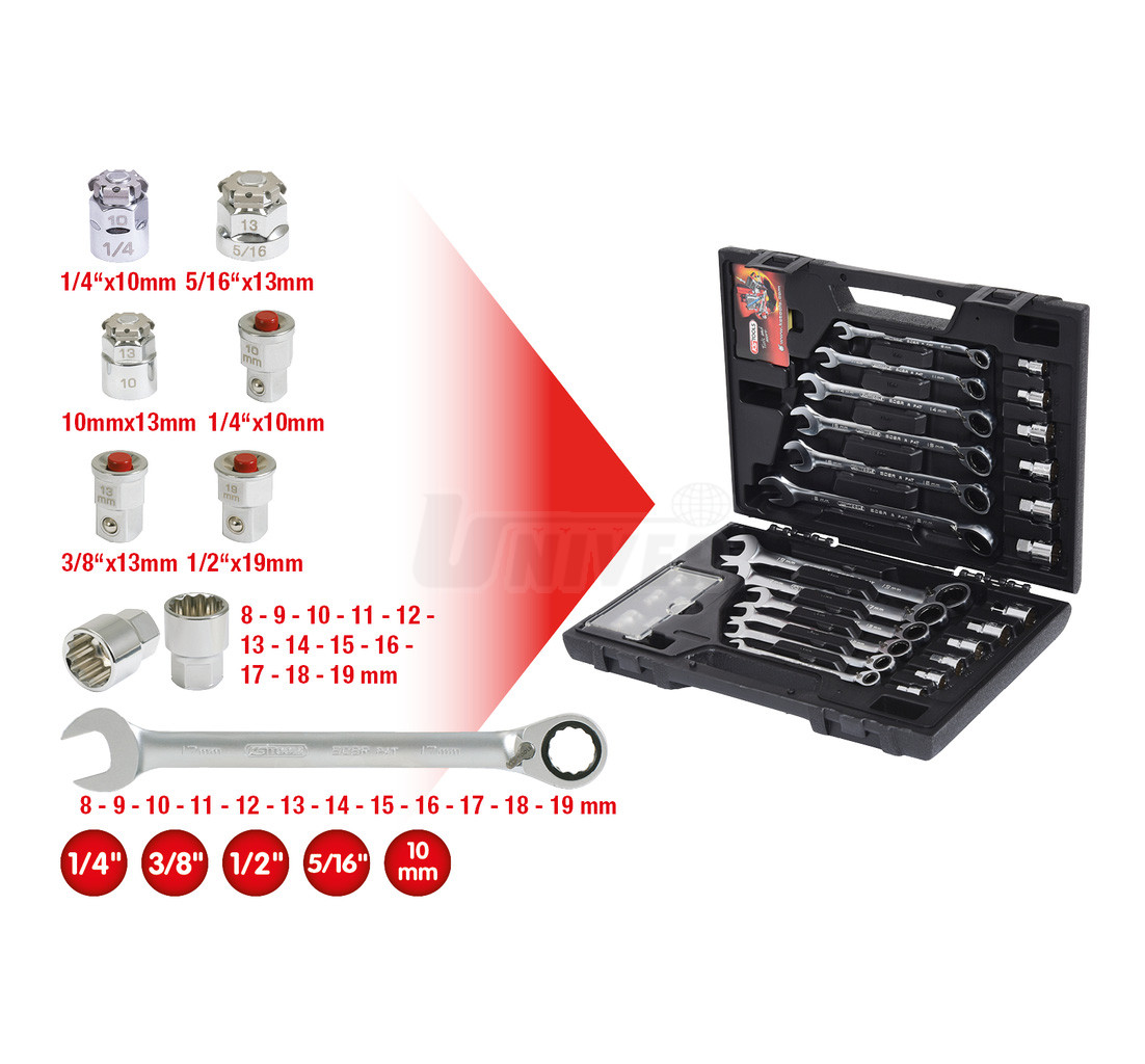 Sada kombinovaných račňových kľúčov a nástrčných hlavíc KSTOOLS 503.4960