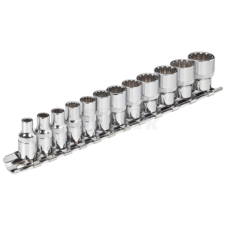 12-dílná sada víceúčelových multiprofilových nástrčných hlavic 1/4" obsahuje tyto hlavice (dl. 25 mm):4, 5, 5,5, 6, 7, 8, 9, 10, 11, 12, 13, 14 mm.