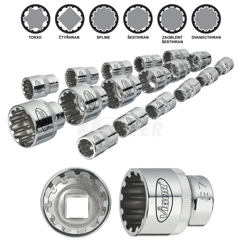 Sada multiprofilových nástrčných hlavíc VIGOR V1898