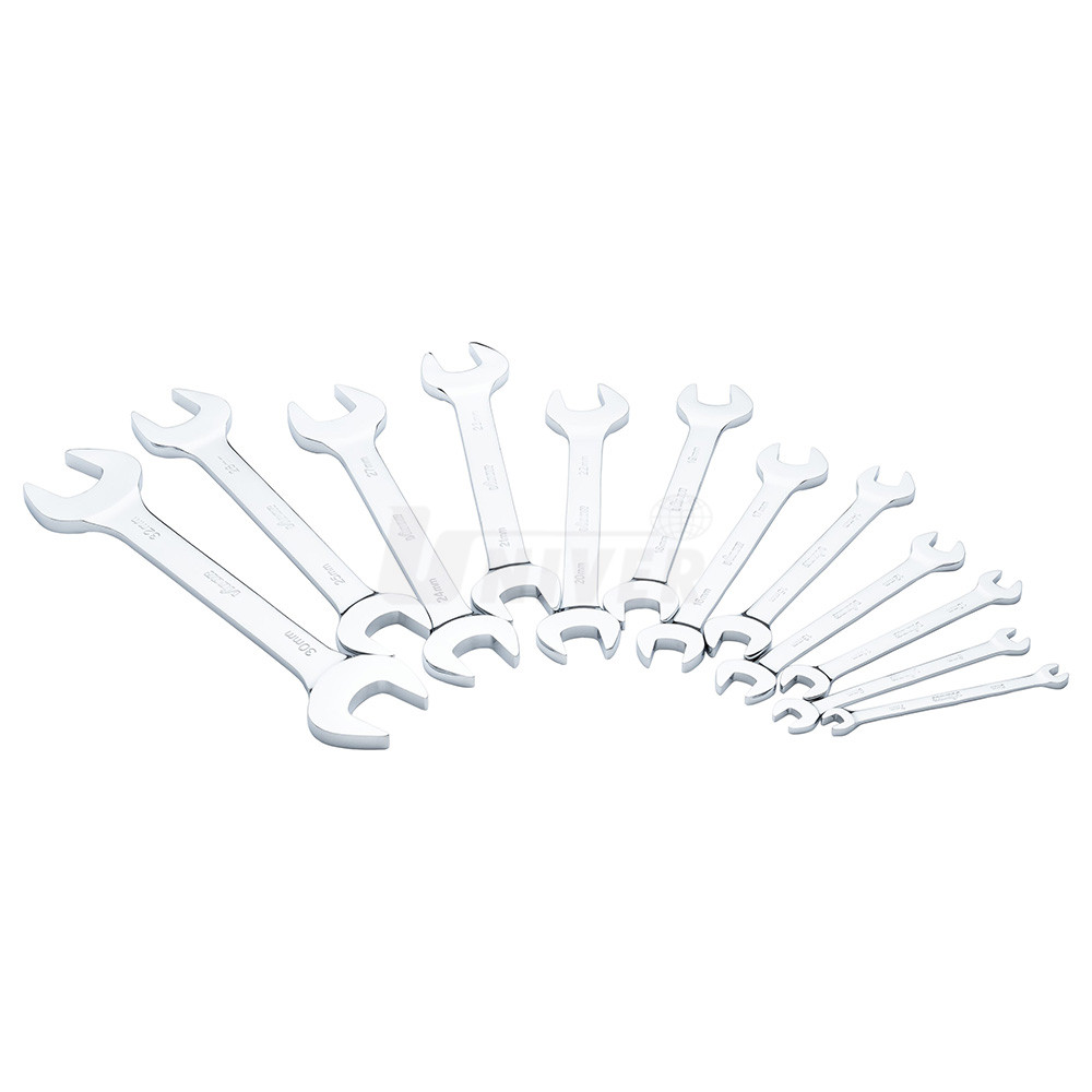 Sada (12 ks) oboustranných otevřených klíčů z kvalitního chrom-vanadia pro profesionální, náročné použití.- štíhlé hlavice, vnější šestihran