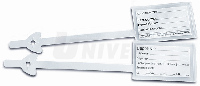 - tyto visačky se dodávají jako sada v krabicích po 100 ks, včetně 100 ks papírových identifikačních štítků, na které se vyplňují příslušné údaje o vozidle, pneumatice atd.