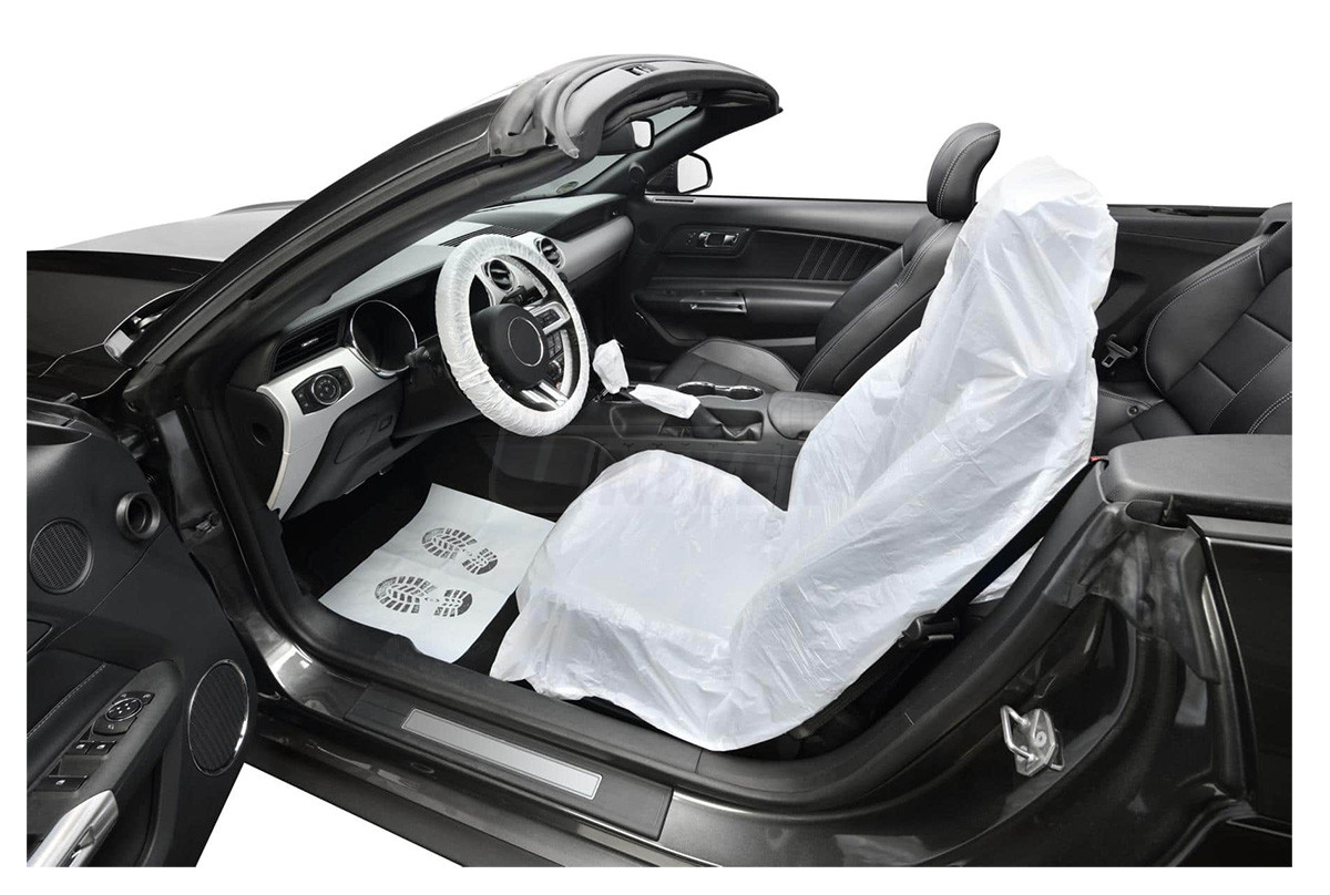 5-dílná sada povlaků v mikrotenovém sáčku.- 1 ks ochranný povlak na přední sedadlo