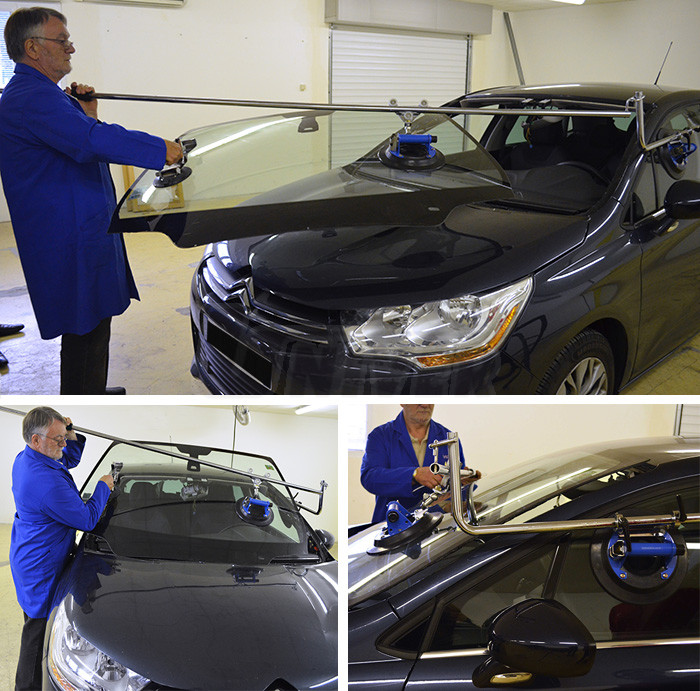 Sada pro snadnou demontáž i montáž čelních autoskel jen jedním mechanikem.Hlavní nosná přísavka s 3-kladkovým mechanismem pro pojezd po hlavní nosné tyči se upevní na středovou linii čelního skla blíže k levé straně vozidla. Na opačnou stranu se v téže úrovni umístí druhá nosná přísavka s odklápěcím závěsem pro hlavní nosnou tyč. Tato tyč se zasune do 3 kladek hlavní nosné přísavky a do závěsu druhé nosné přísavky.