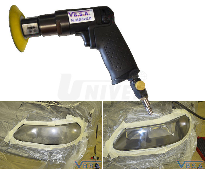 Sada pro profesionální odstranění škrábanců a obnovení matných, zažloutlých, zoxidovaných, špatně průhledných krytů světlometů automobilů vysoké kvality (vyrobeno ve Francii).Optimální soubor přístrojů a přípravků umožňuje snadno a rychle odstranit nejenom škrábance na plastových krytech světlometů, ale obnovením průhlednosti i původní úroveň jejich svítivosti.