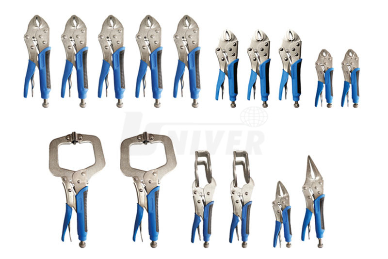 16-dílná sada skřipcových / přidržovacích kleští různých tvarů a velikostí.- kleště se seřizovacím šroubem a převodovým mechanismem s lomenou pákou zaručují vysoký upínací tlak a umožňují ovládání jen jednou rukou