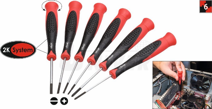 6-dílná sada šroubováků pro elektroniky se dodává v plastovém boxu.- materiál: chrom-vanadium