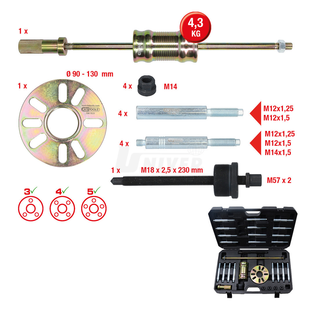 Sada sťahovákov na náboje kolies a kĺbové hriadele KSTOOLS 700.1530