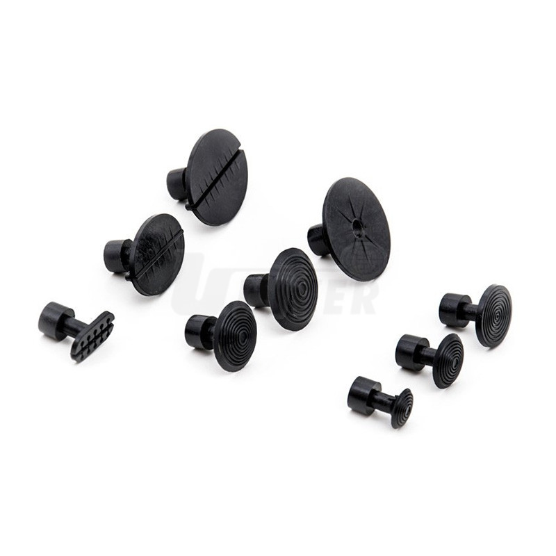 Sada (10 ks) plastových (PA) nalepovacích vytahovacích adaptérů se standardní hlavou pro opravy důlků a promáčklin na karosériích vozidel technologií PDR (Paintless Dent Repair).