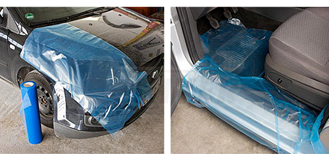 Samolepicí / adhézní ochranné fólie navinuté na cívce pro ochranné zakrytí částí karosérie.- jednoduché a rychlé zakrytí požadovaných částí karosérií automobilů