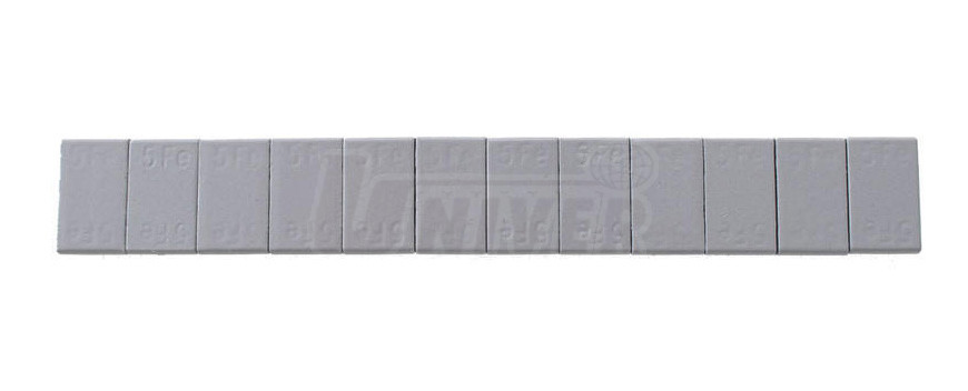 Samolepící ocelové závaží 12 x 5 g s přesnou gramáží a s kvalitní lepící páskou, povrchově upravené šedým lakem.Lze objednat pouze celé balení (100 ks pásků).