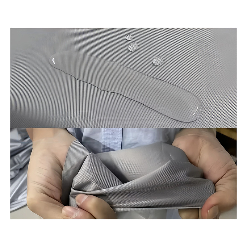 - tkanina z jednej strany potiahnutá vrstvou polyméru, ktorý zaisťuje nepremokavosť