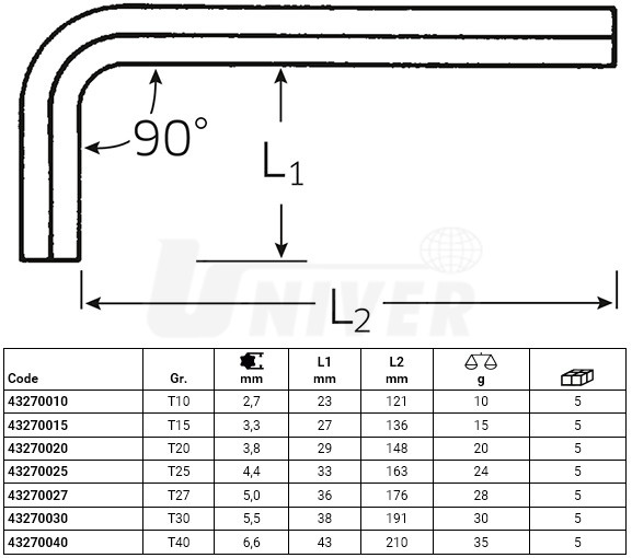 Skrutkovače uhlové TORX dlhé s guľovou hlavou STAHLWILLE radu 10771