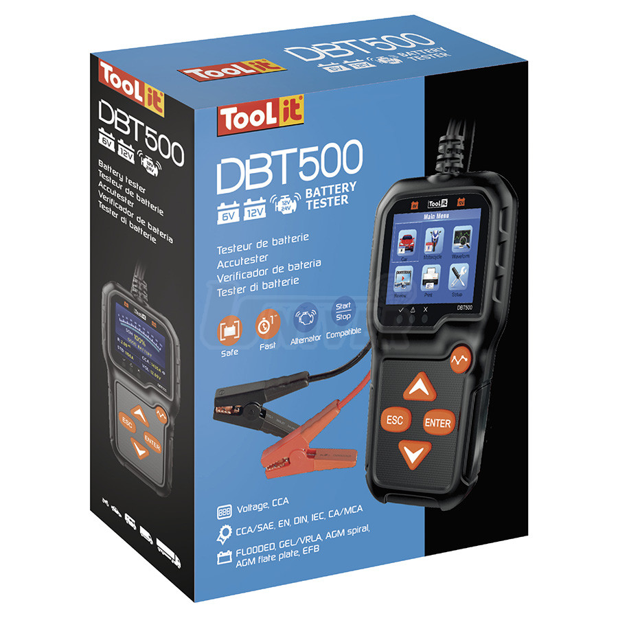 Digitální přístroj umožňuje zkoušet napětí a stav různých druhů baterií (7 až 240 Ah / 6 - 12 V), startovací napětí startérů (6 -12 V) i napětí naprázdno a při zatížení a zvlnění proudu při zatížení alternátorů (6 - 12 V).- testy různých druhů baterií 6 V / 12 V bez jejich vymontování nebo vymontovaných (tekutý elektrolyt, SLI, VRLA / GEL, AGM FLAT PLATE, AGM SPIRAL, baterie START/STOP/EFB/AGM atd.)