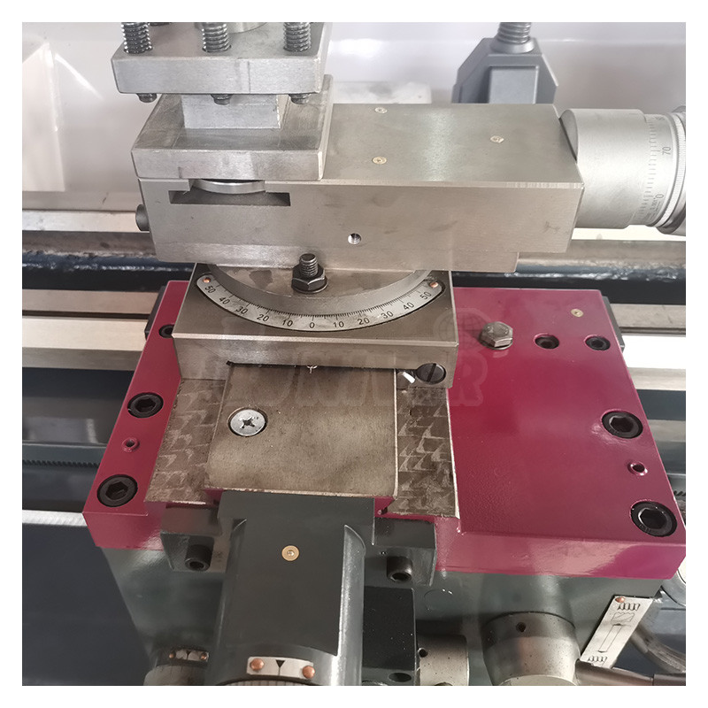 Stolový sústruh s elektronicky plynule nastaviteľnými otáčkami vretena, so strojovým posuvom, s možnosťou rezania závitov, s dĺžkou sústruženia 750 mm.- na obrábanie ocele, neželezných kovov vrátane hliníka a jeho zliatin, SV materiálov a plastov