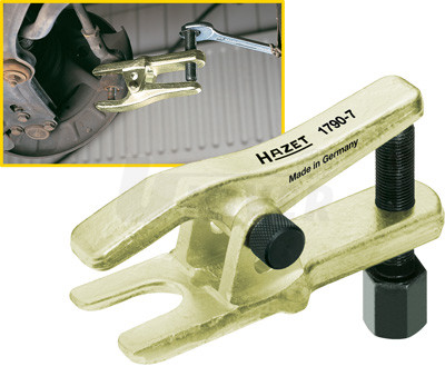 Univerzální stahovák kulových čepů běžných osobních automobilů, hlav řídících tyčí, stabilizátorů apod. pákového provedení se speciálním pevnostním šroubem má otevření vidlice 20 mm a plynule nastavitelný upínací rozsah 12-50 mm. Ten je navíc nastavitelný ve dvou stupních, protože středový čep lze zasunout do dvou různých otvorů (1.stupeň: do 30 mm, 2.stupeň: do 50 mm). Tento stahovák je vyroben ze speciální, vysoce kvalitní zušlechtěné oceli, zápustkově kované.Stahovák kulových čepů HAZET 1790-7 se používá např. u vozů Ford, BMW, Volvo, Toyota, Opel, VW/Audi/Škoda/SEAT, Renault atd.
