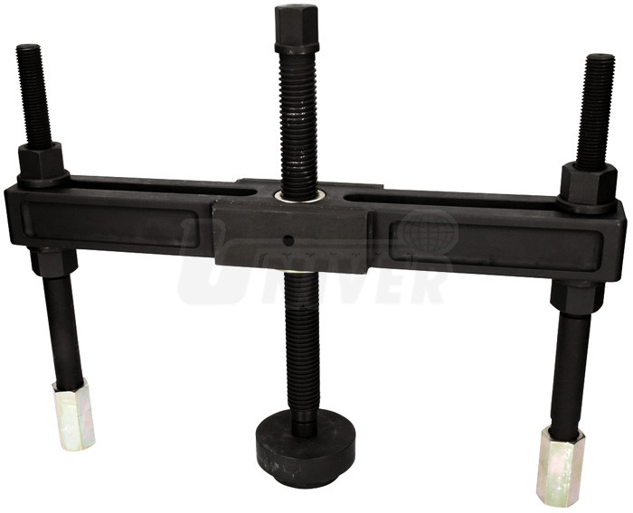 Stahovák na náboje kol nákladních automobilů pro otvory na roztečných kružnicích průměru 110-448 mm a šrouby do průměru 30 mm.- 27-dílná sada tvořící stahovák na náboje kol nákladních automobilů, autobusů atd.