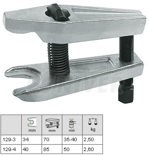 Stahováky kulových čepů osobních automobilů (na spojovacích/řídících tyčích, na pákách řízení, na zavěšeních kol, na stabilizátorech apod.) pákového provedení se speciálním pevnostním šroubem.