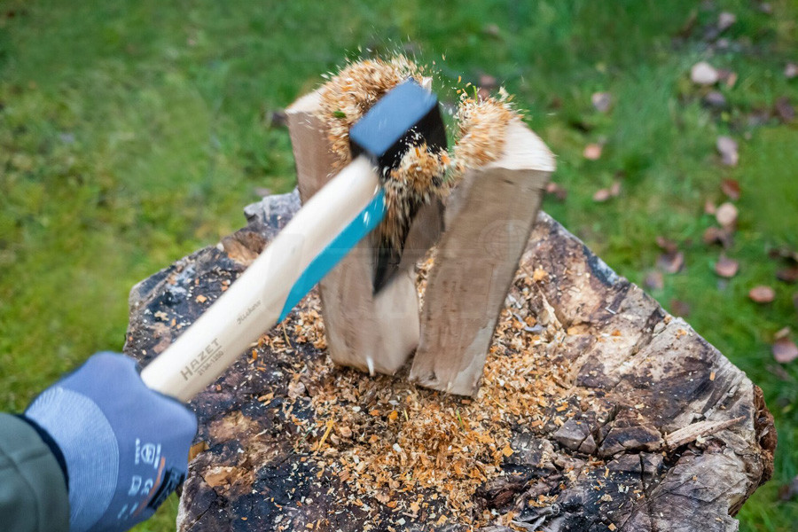 - vysoký štípací účinek díky speciálnímu tvaru hlavy s na duto kovanými rozpěrnými klíny, které zabraňují sevření sekery ve dřevu