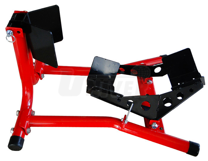 Stojan pro parkování nebo přepravu motocyklů s pneumatikami 16" – 18".- motocykl najede na překlápěcí nájezd stojánku a jeho přední kolo je okamžitě ve stojanu sevřením stabilizováno a usazeno