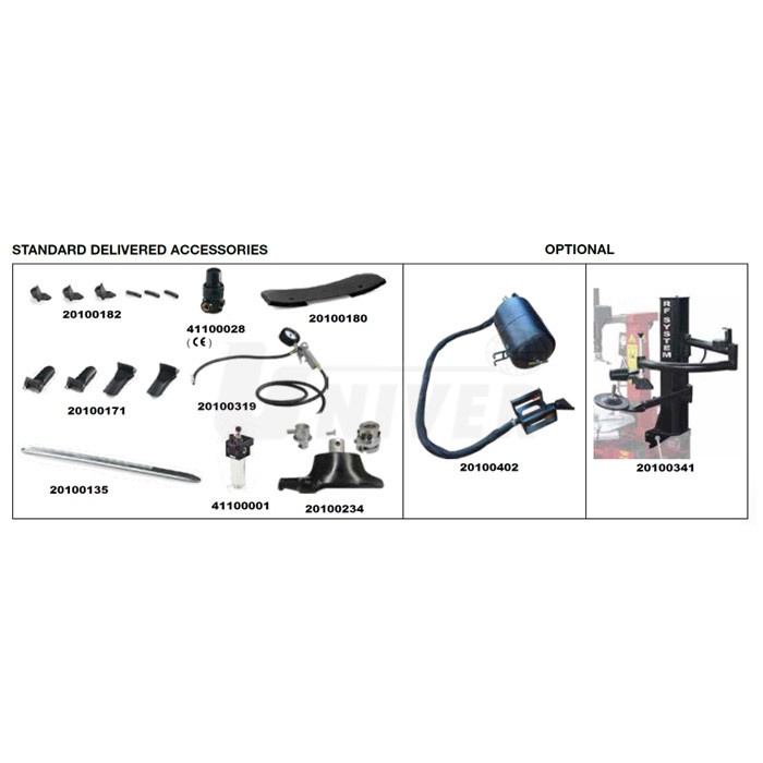 - možno dovybaviť prídavným ramenom / helperom pre jednoduchšiu montáž nízkoprofilových pneumatík a pneumatík s núdzovým dojazdom (napr. RunFlat) a tlakovým delom