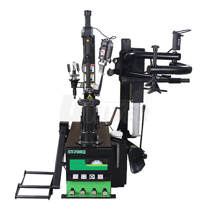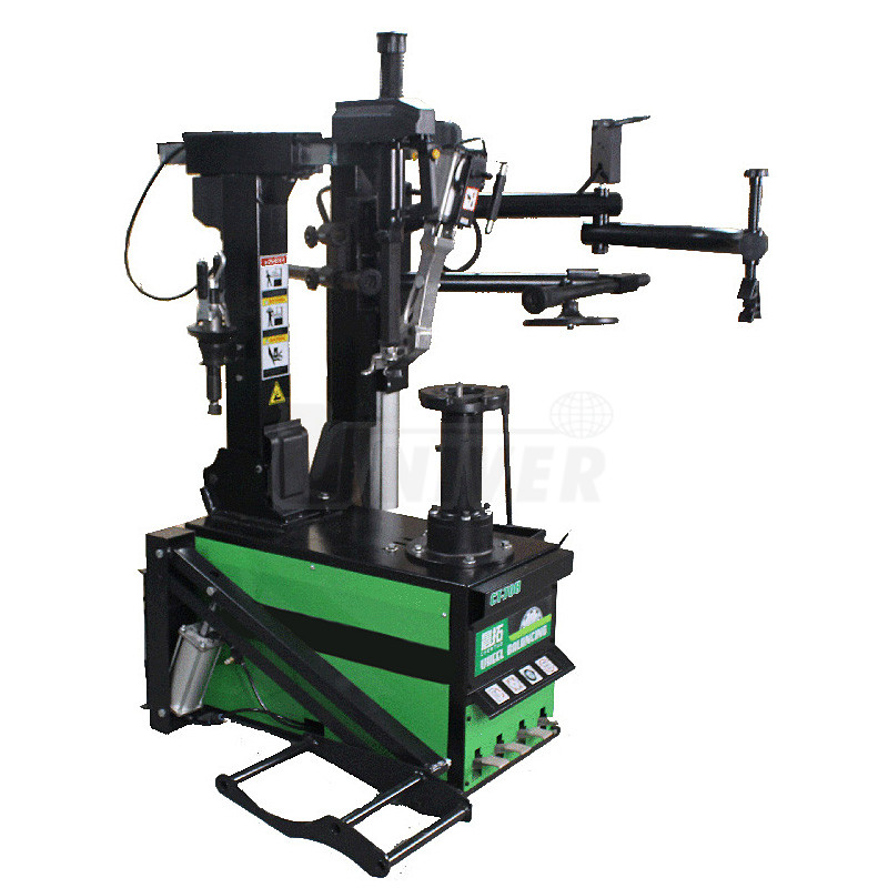 atraktívny dizajn v čierno-zelenej kombinácii, ktorý sa líši od väčšiny červených alebo modrých pneuservisných strojov v krajine