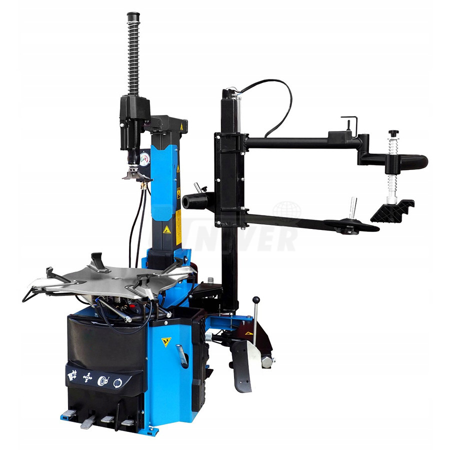 Elektropneumatický stroj (automat) pro montáž a demontáž pneumatik osobních a lehkých užitkových automobilů až do 28" se čtyřčelisťovým upínacím talířem.- velký čtyřčelisťový upínací talíř s pneumatickým upínáním kola