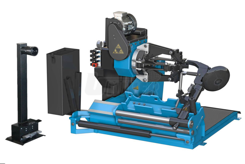 Elektro-hydraulický stroj pro montáž a demontáž pneumatik nákladních automobilů a strojů s průměry ráfků 13" až 27".
